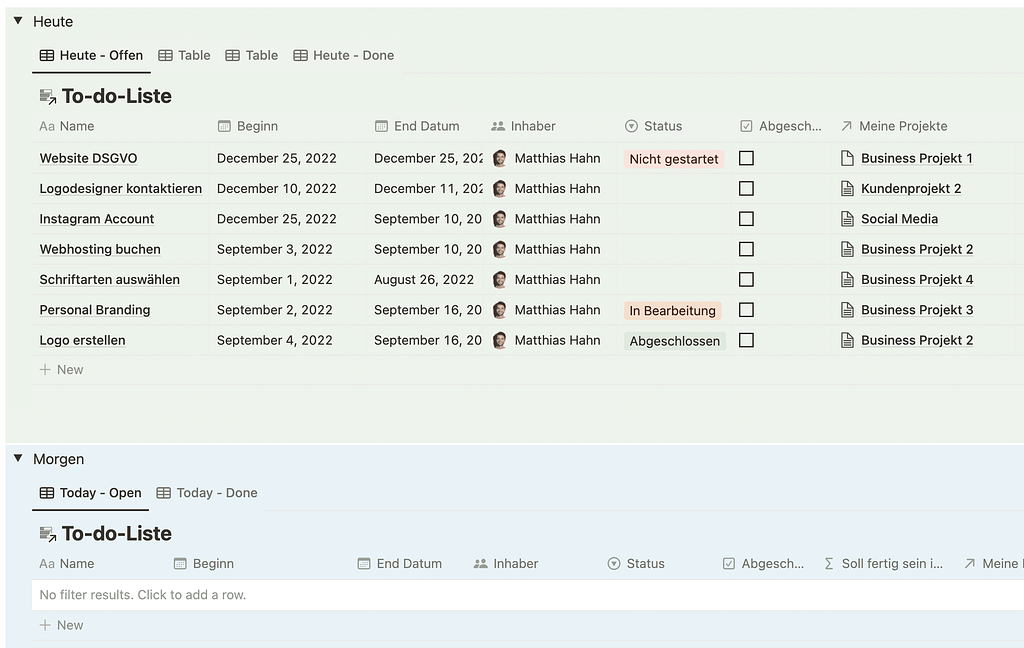 Mit dem Business Dashboard hast du dein gesamtes Unternehmen im Blick. Bestimme deine Ziele, organisiere Meetings, manage deine Projekte und hab jeden Tag ersichtlich, welche To-Dos du heute, morgen und in einer Woche abzuhaken hast.