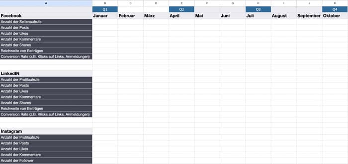Unsere KPI-Tracking-Sheets für Social Media, E-Mail-Marketing und Funneloptimierung helfen dir, die Leistung deiner Geschäftsprozesse zu messen und zu analysieren. Es hilft, Ziele zu setzen, den Fortschritt zu überwachen und die Entscheidungsfindung zu verbessern.