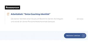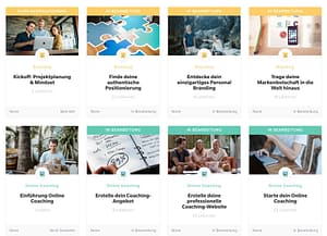 In der Coach University erkläre ich dir auch Schritt-für-Schritt anhand von Videos und Arbeitsblättern, wie du dein Marketing-Fundament findest: Positionierung, Branding, Corporate Design.