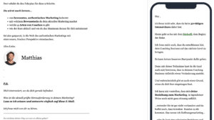 „Matthias ist ein absoluter Fachmann, wenn es um Webseitenaufbau und Onlinemarketing geht. Er hat mich dabei unterstützt, meine Webseite zu relaunchen. Bin sehr happy mit der neuen Seite und die Conversion-Rate stieg deutlich.“