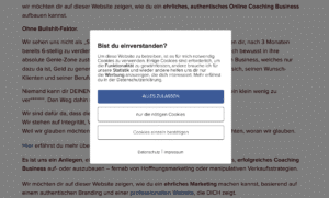 Deine Homepage muss natürlich rechtlich sauber sein. Du benötigst ein Cookie-Consent-Tool, Impressum und eine saubere Datenschutzerklärung. Alles Dinge, die wir für dich abdecken.